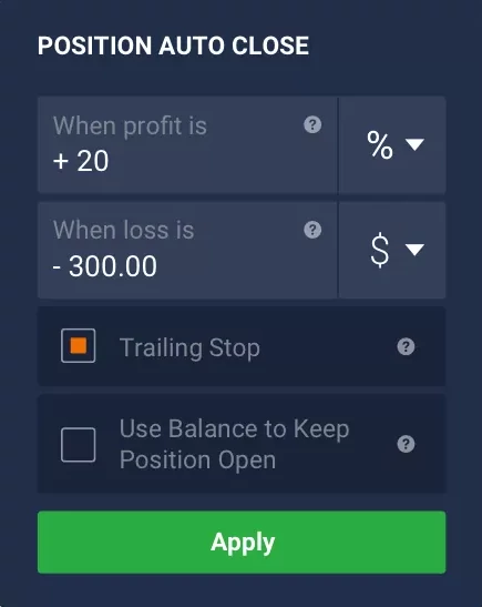 With features like Stop Loss/Take Profit, Negative balance protection and Trailing Stop you can manage your losses and profits at the levels predetermined by you.